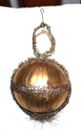 Title (ebay affiliate link): Early 1900s. Papier-Mache Gold Container, with Tinsel Wire Trim, Lametta. German