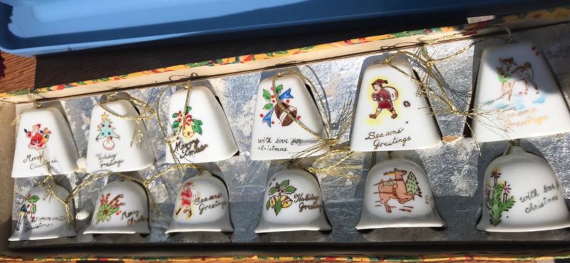 Set of 12 Antique Christmas Bell Ornaments Japan
