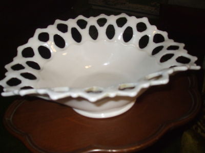 VINTAGE LACED MILK GLASS BOWL/BASKET