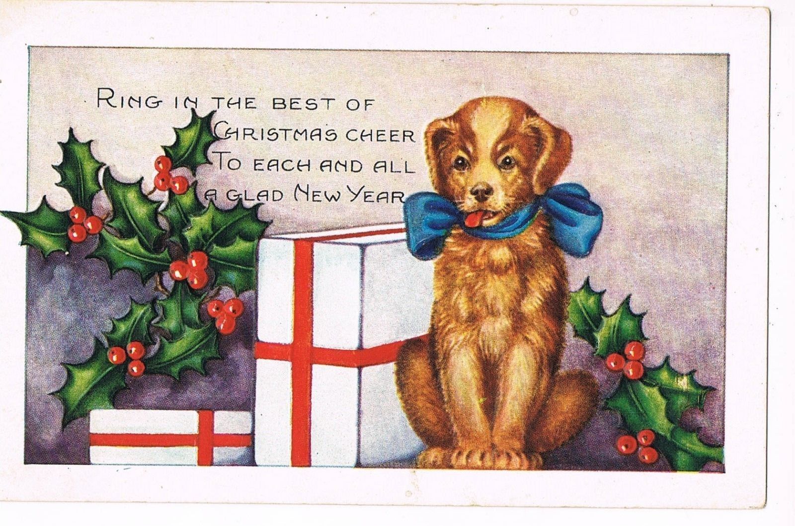 Title (ebay affiliate link): ANTIQUE EMBOSSED CHRISTMAS Postcard (WHITNEY MADE) PUPPY, BLUE BOW AT NECK
