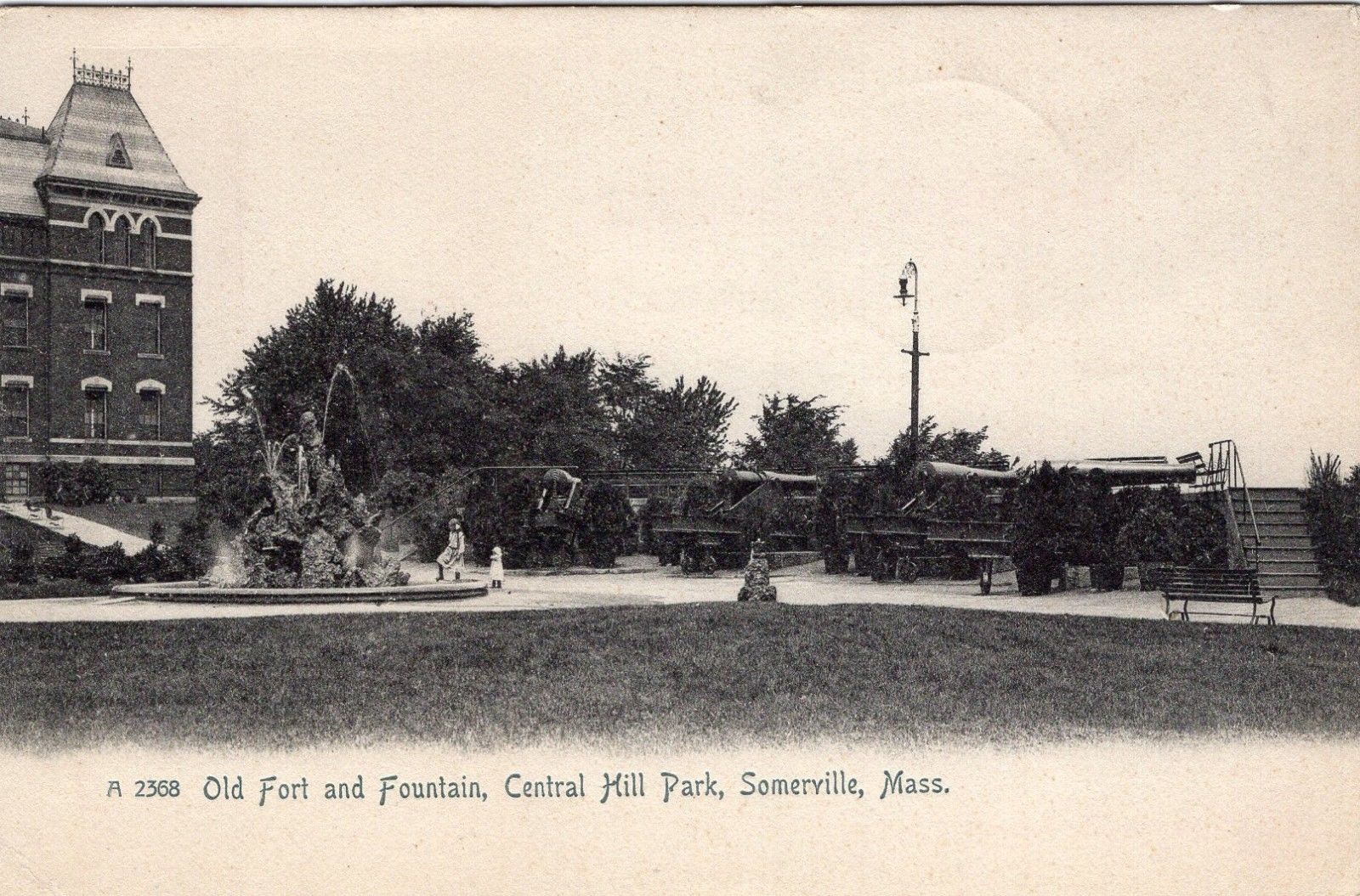 Title (ebay affiliate link): Somerville, Mass, Old Fort and Fountain, Central Hill Park - Rotograph