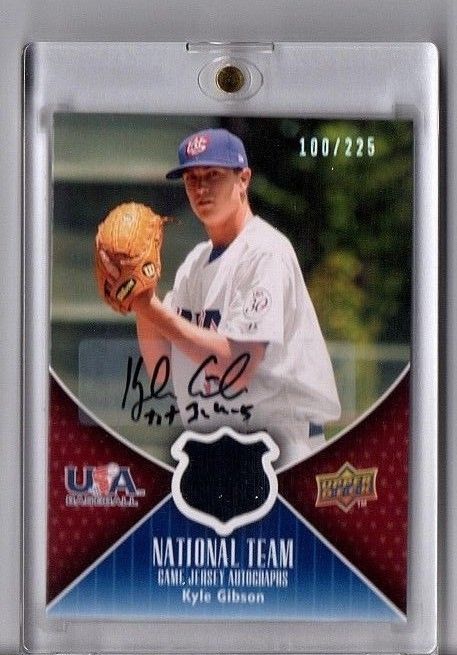 2009 UPPER DECK USA BASEBALL AUTO GAME JERSEY RC CARD KYLE GIBSON 100/225 RARE