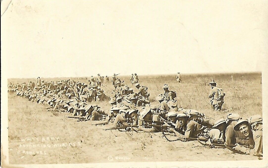 Title (ebay affiliate link): Antique Real Photo Post Card White Army Advancing Against Trenches