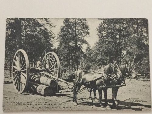 Title (ebay affiliate link): Flagstaff, Ariz. 1909 Pc Hauling Logs On Big Wheels