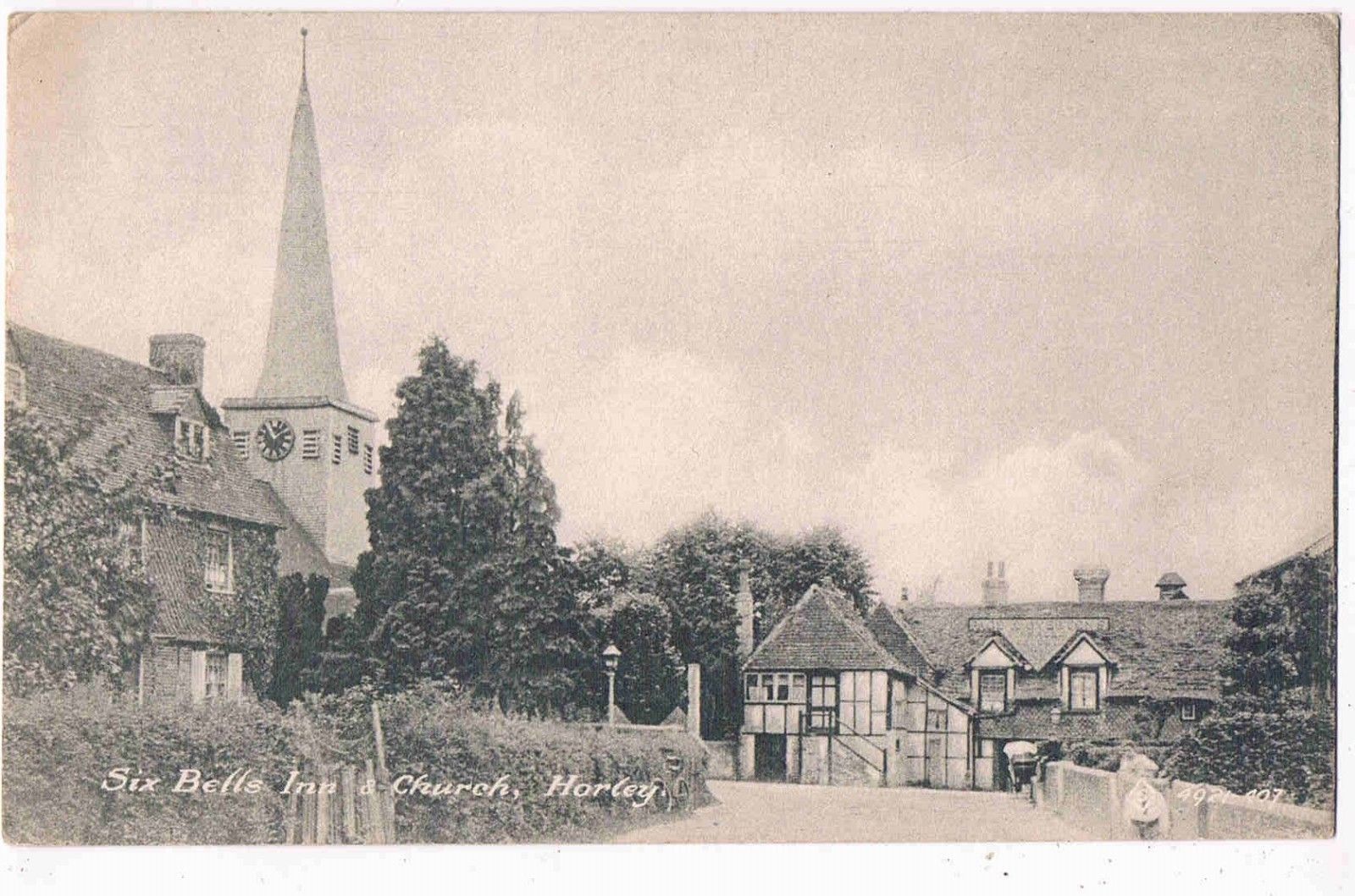 Title (ebay affiliate link): SURREY - THE SIX BELLS INN AND CHURCH, HORLEY, 1933