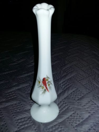 Title (ebay affiliate link): Fenton Milk Glass Bud Vase Cardinals in Winter Hand Painted & Signed Farmhouse