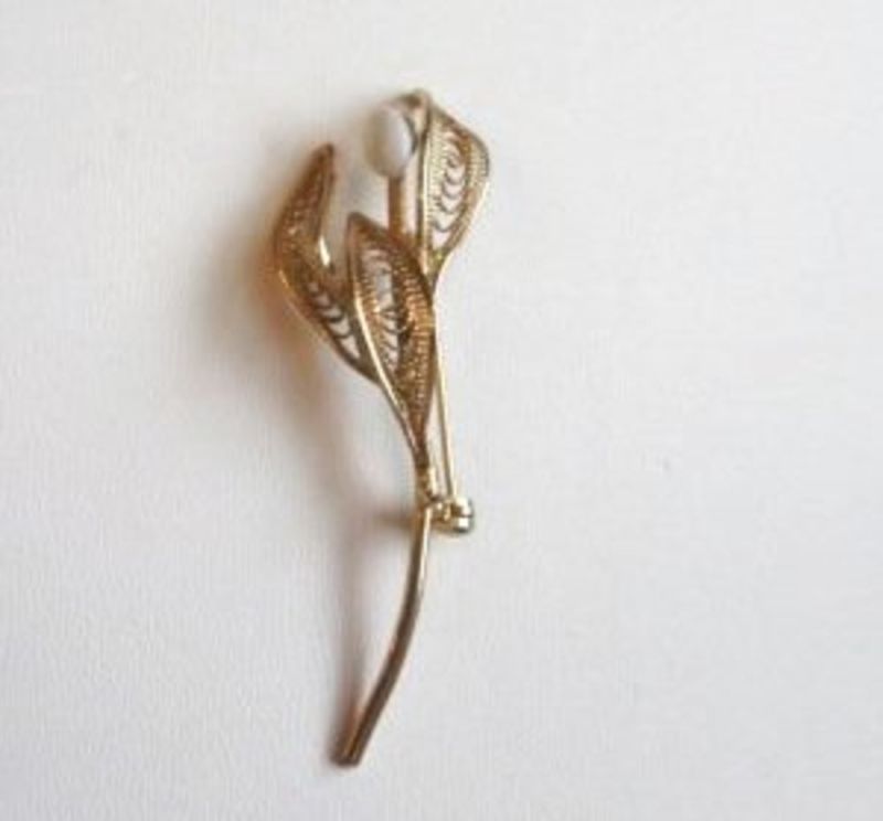 Title (ebay affiliate link): VTG Brooch Pin Flower Leaf Filigree Victorian Milk Glass Cabochon Gold Tone 10!