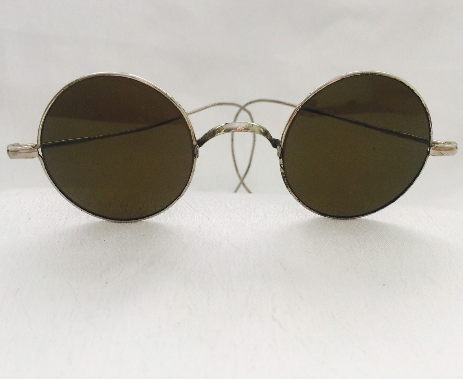 Title (ebay affiliate link): Antique Silver Tone LENNON - HIPPIE Look WILLSON Green Round Lens SUNGLASSES