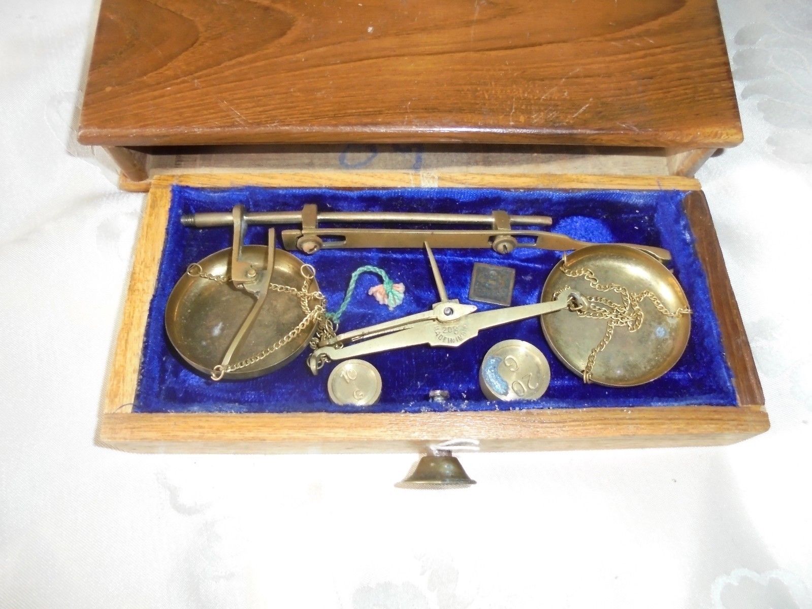 Vintage brass pharmacy balance scales wooden box