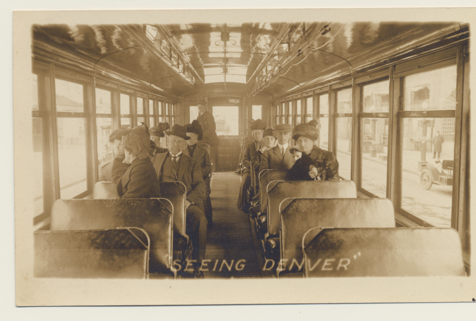 RPPC, "NOKO", "Seeing Denver" streetcar interior