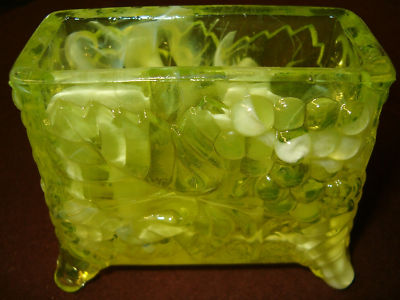 VASELINE MILK SLAG GLASS TOOTHPICK MATCH HOLDER URANIUM