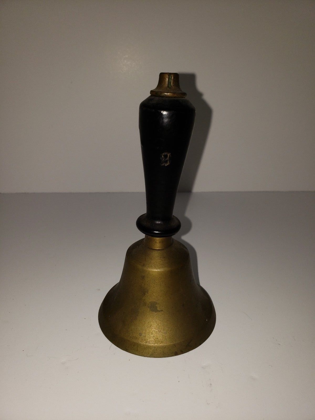 Title (ebay affiliate link): Antique Brass & Wood Teachers Hand School Bell No. 2