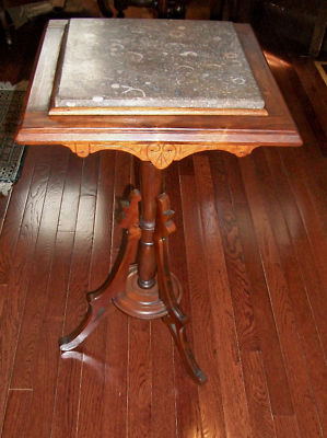 WALNUT EASTLAKE CANDLESTAND WITH MARBLE INSERT