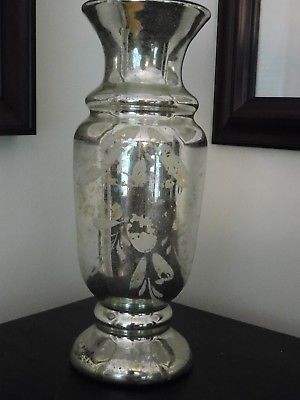 Old Vintage SILVER MERCURY GLASS Vase Hand Painted 10.5" Tall