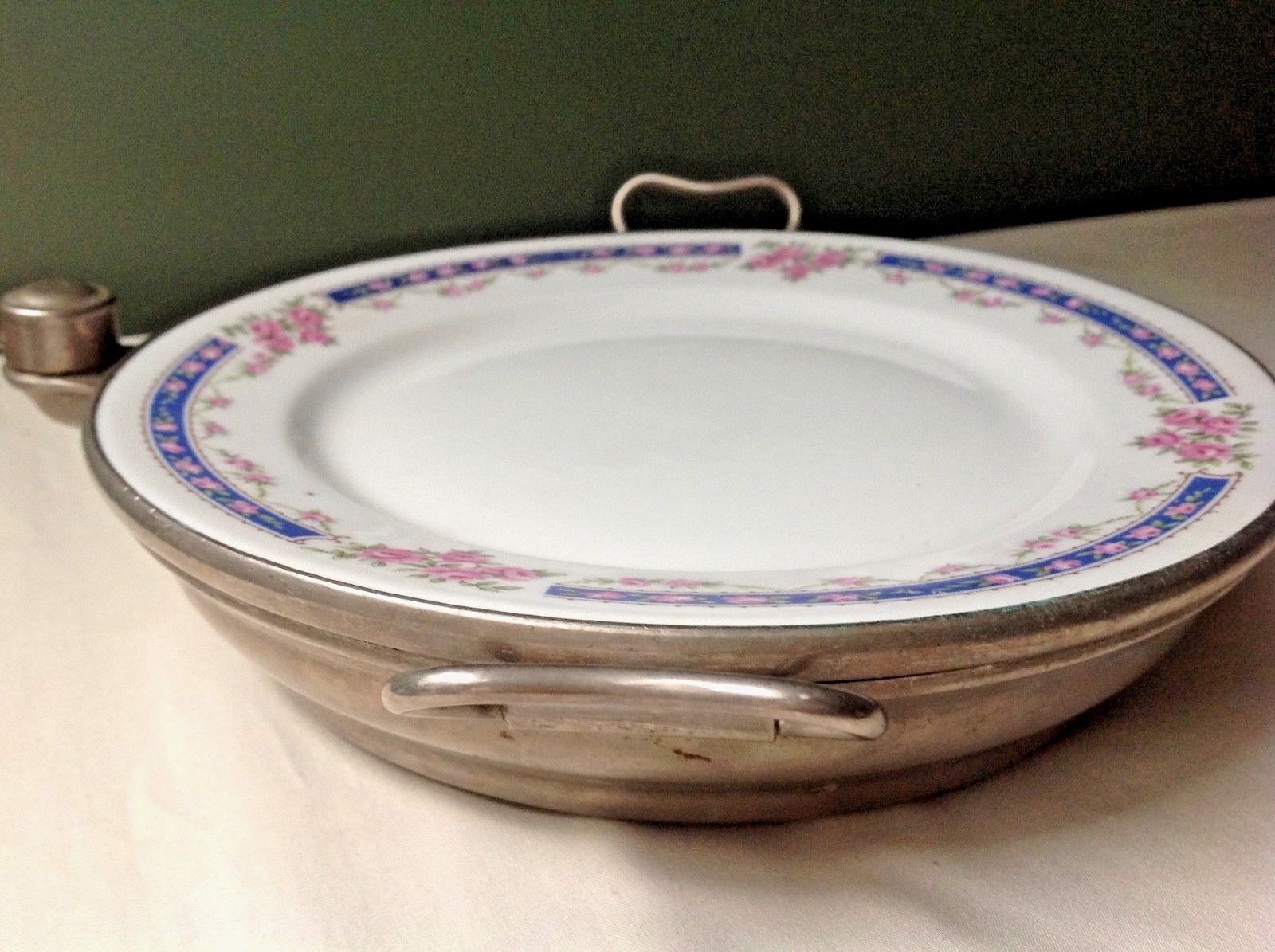 Vintage EMPRESS Ware Porcelain Warming Plate w/Silverpate Hot Water Bottom 1912