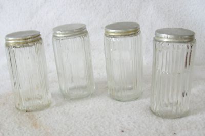 ANTIQUE HOOSIER CABINET GLASS SPICE JARS W/LIDS VINTAGE