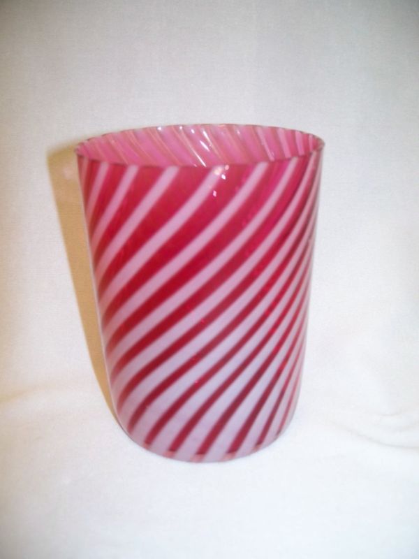 Victorian Mold Blown Antique Glass Tumblers Cranberry Opalescent Swirl NR