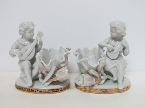 Pair of Old German Porcelain Figure Statue with Crossed Arrow Mark