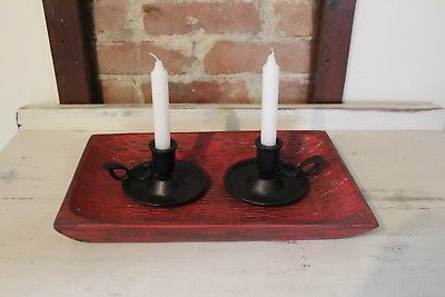 PRIM*Very Large Wooden Painted Tray w/ 2 Black Cast Iron Candlesticks*etwalls