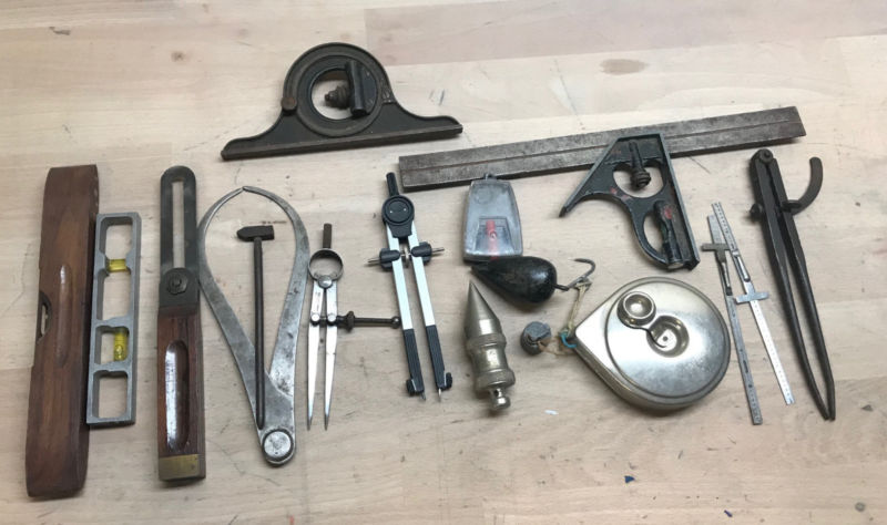 Title (ebay affiliate link): Antique Levels Squares Plum Bob Calipers Angle gauge Etc Vintage Tools LOT of 16