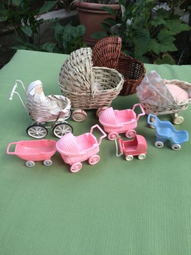 Title (ebay affiliate link): Doll Carriages, Small and Miniature Doll Buggies and Carriages, Eight Assorted