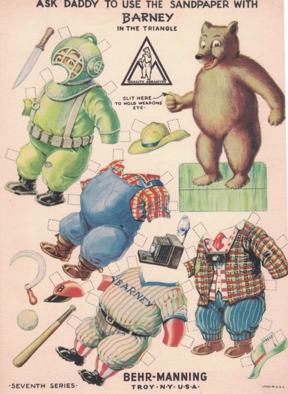 Title (ebay affiliate link): VTG 40s Paper Doll Bear BEHR MANNING Barney Uncut Baseball Deep Sea Diver Tool