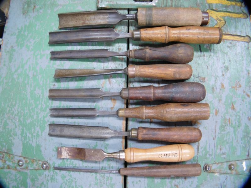 Title (ebay affiliate link): Mixed lot nine (9) vintage gouge chisels Buck, Butcher, Cummins, New Haven Edge