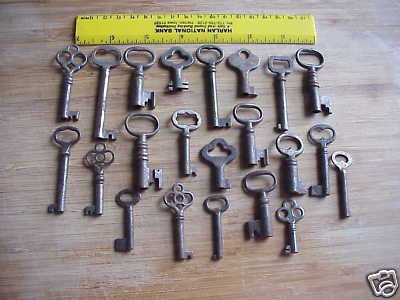 Title (ebay affiliate link): 22 IRON ANTIQUE BARREL KEYS TRUNKS FURNITURE DOORS
