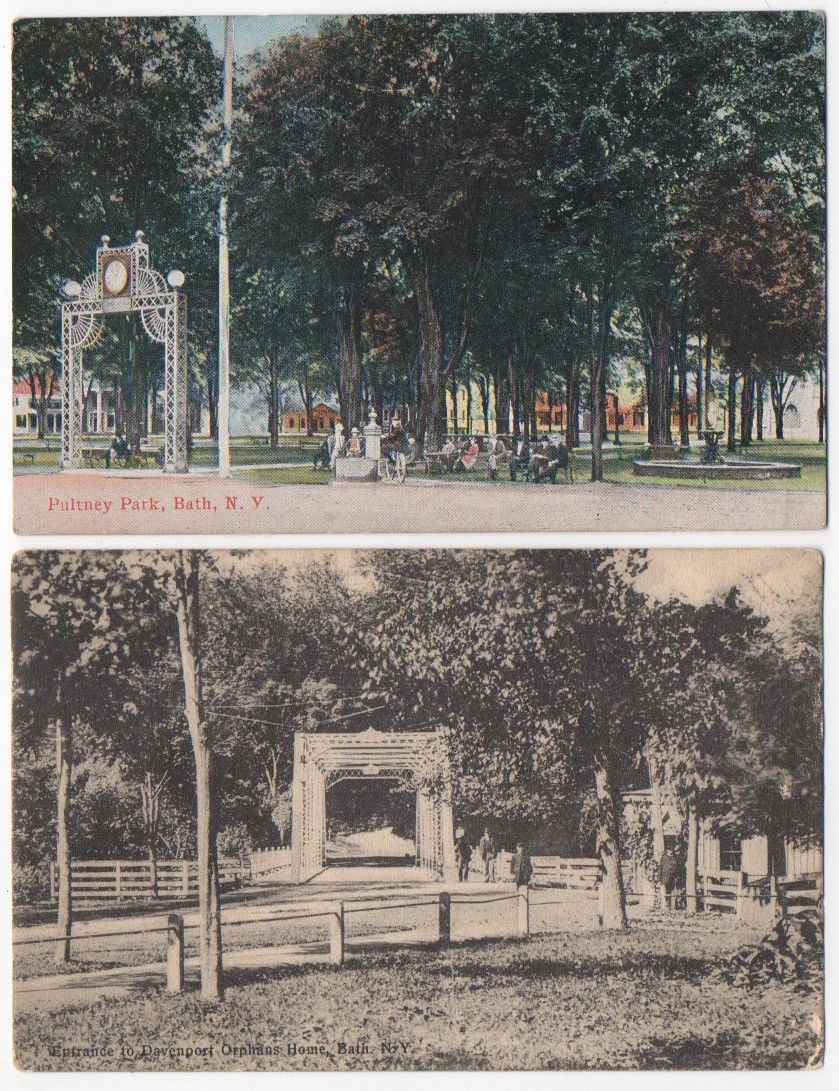 Title (ebay affiliate link): 2~POSTCARDS BATH,NY~PITNEY PARK~BRIDGE TO DAVENPORT ORPHANS HOME~Steuben County