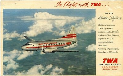 Title (ebay affiliate link): TWA - TRANS WORLD AIRLINES - MARTIN 202 - AIRLINE ISSUE POSTCARD