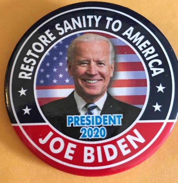 Title (ebay affiliate link): 2 1/4" Joe Biden President 2020 "Restore Sanity to America" Pinback Button