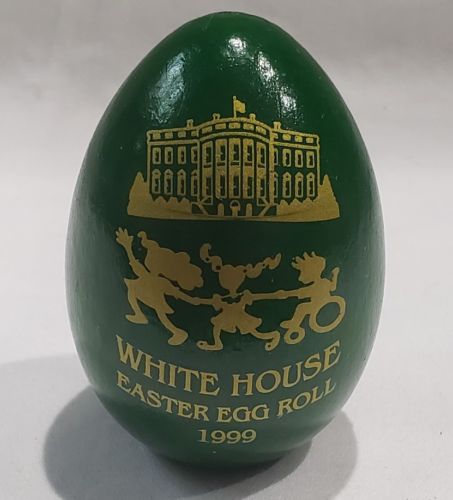 Title (ebay affiliate link): *SUPER RARE* 1999 White House Green Wooden EASTER EGG Roll Bill Hillary Clinton