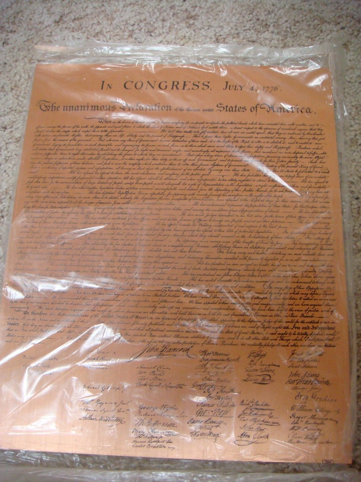 Title (ebay affiliate link): Metal replica of the Declaration of Independence