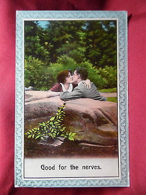 Title (ebay affiliate link): VINTAGE POSTCARD - GOOD FOR THE NERVES - ROMANTIC COUPLE