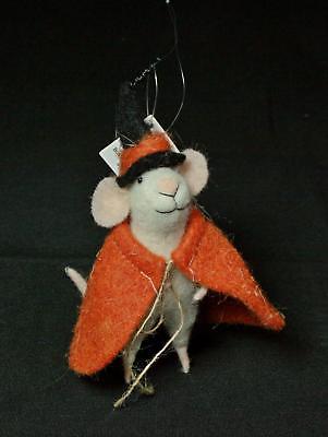 Primitive Country Folkart Felted Wool Witch With Orange Cape Halloween Mouse