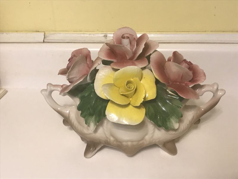 Title (ebay affiliate link): Nuova Capodimonte Large Floral Roses Handled Centerpiece Made In Italy
