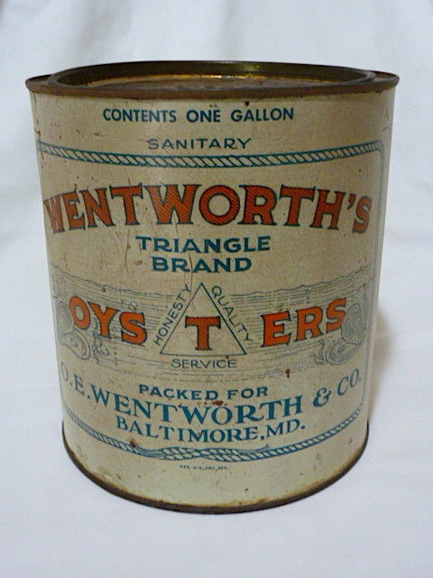 Title (ebay affiliate link): WENTWORTH''S Oysters O.E. Wentworth & Co. Baltimore, MD. 1 Gal Tin Can VTG
