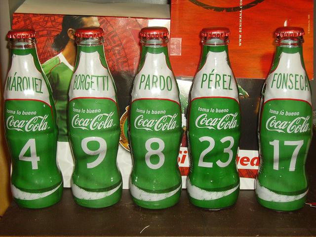 Title (ebay affiliate link): Coca Cola glass bottle soccer set Mexico Team uniform