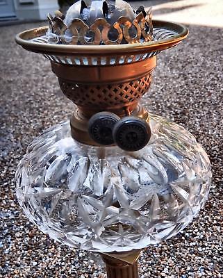 Title (ebay affiliate link): ANTIQUE BRASS COLUMN OIL LAMP WITH HEAVILY CUT CLEAR GLASS FONT