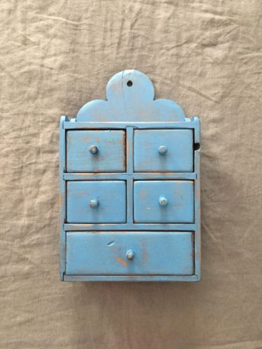 Title (ebay affiliate link): Antique Primitive Wood Spice Apothecary Drawer Cabinet Knobs Wall Box Blue