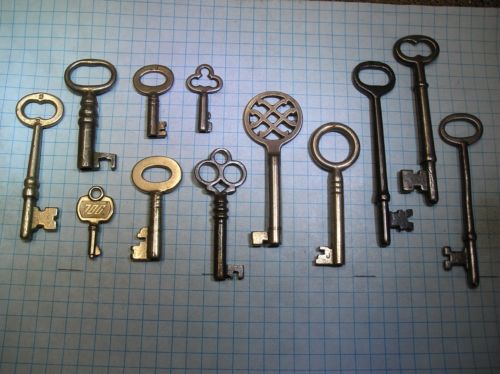 Title (ebay affiliate link): LOT OF 12 ANTIQUE SKELETON, FURNITURE, BARREL, CABINET AND OLD LOCK KEYS
