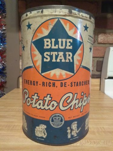 Vintage BLUE STAR Potato Chips Tin Can