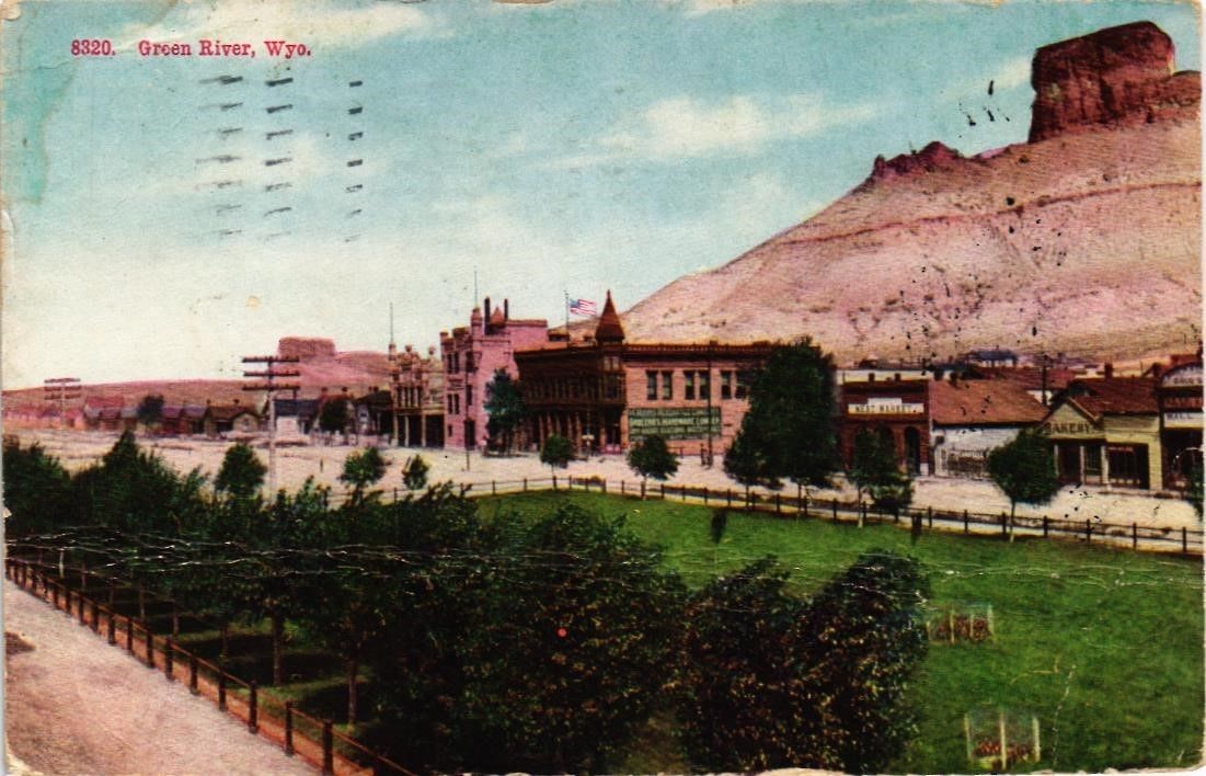 Title (ebay affiliate link): DR JIM STAMPS US GREEN RIVER WYOMING POSTCARD CREASED 1910 KANSAS CITY