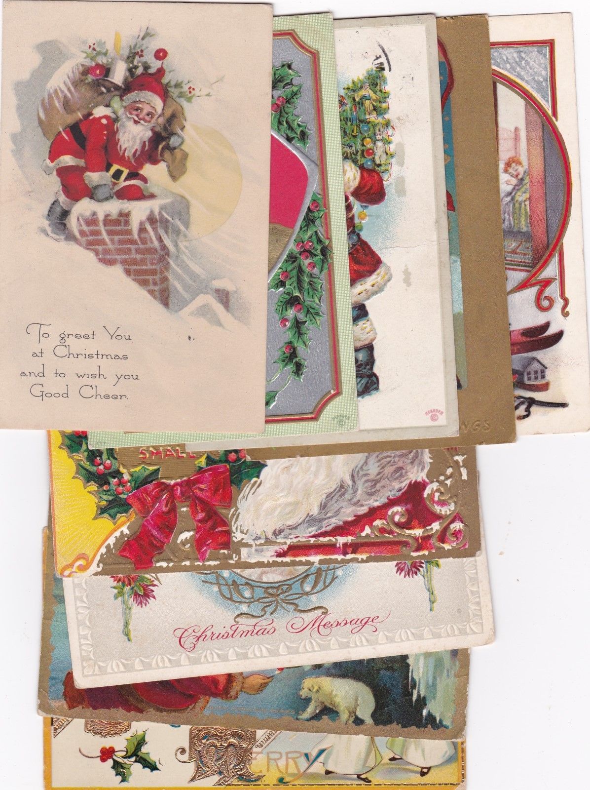 Title (ebay affiliate link): 9 VINTAGE POSTCARDS ALL CHRISTMAS WITH SANTA 1909-1923