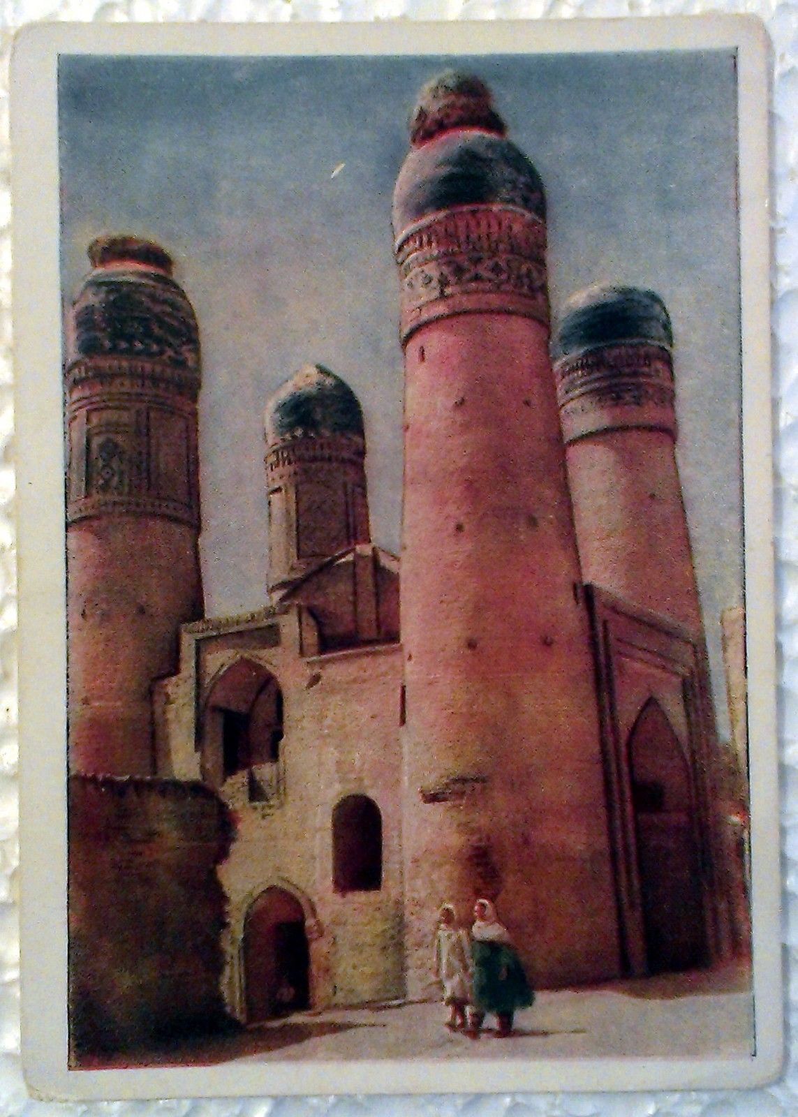 Title (ebay affiliate link): Old Russian postcard 1950s Madrasah Khalifa Niyazkul Known Chorminor Bukhara