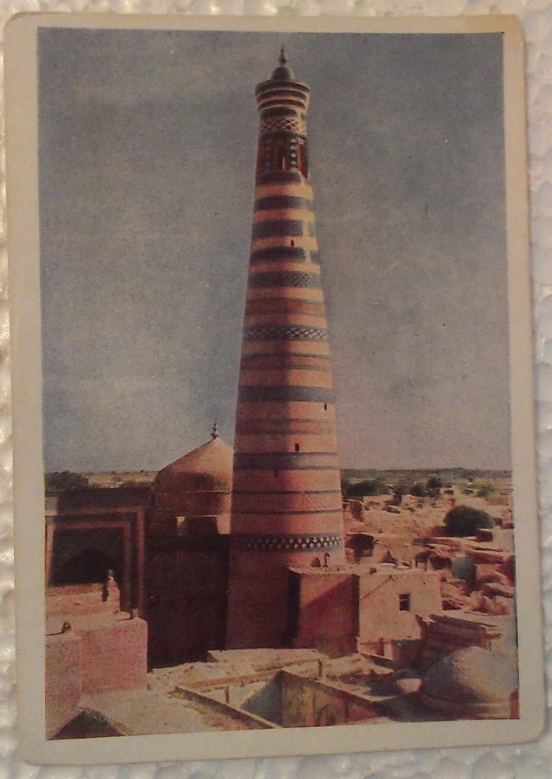Title (ebay affiliate link): Old Russian postcard 1950s Islamic Hoxha Minaret Khiva Uzbekistan Khodja 1910