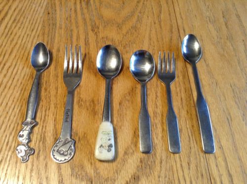 Title (ebay affiliate link): 6 vintage children''s stainless utensils Disney Mickey Big Bird Bonny Sanitoy