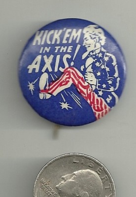 Title (ebay affiliate link): WW2 Patriotic Pinback "Kick'em in the Axis" nice cond.