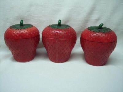 3 Painted Milk Glass Strawberry Covered Dish