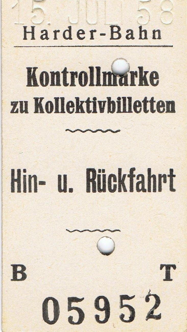 Railway tickets Switzerland Harder-Bahn Controll mark for group travel 1958